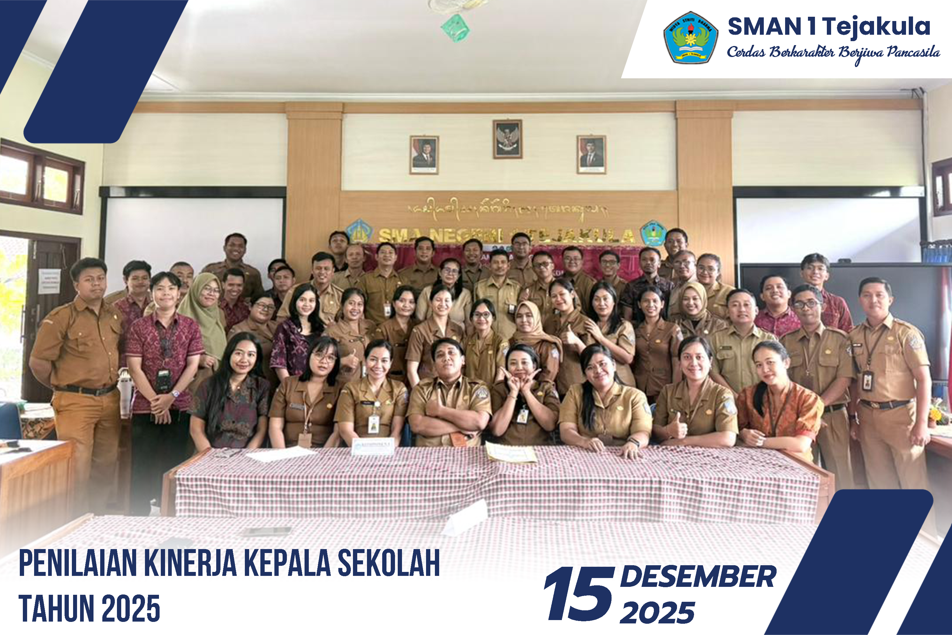 Hari ini, SMA Negeri 1 Tejakula melaksanakan kegiatan Penilaian Kinerja Kepala Sekolah (PKKS). PKKS merupakan proses pengumpulan, pengolahan, analisis dan interpretasi data tentang kualitas kerja Kepala Sekolah dalam melaksanakan tugas pokoknya.