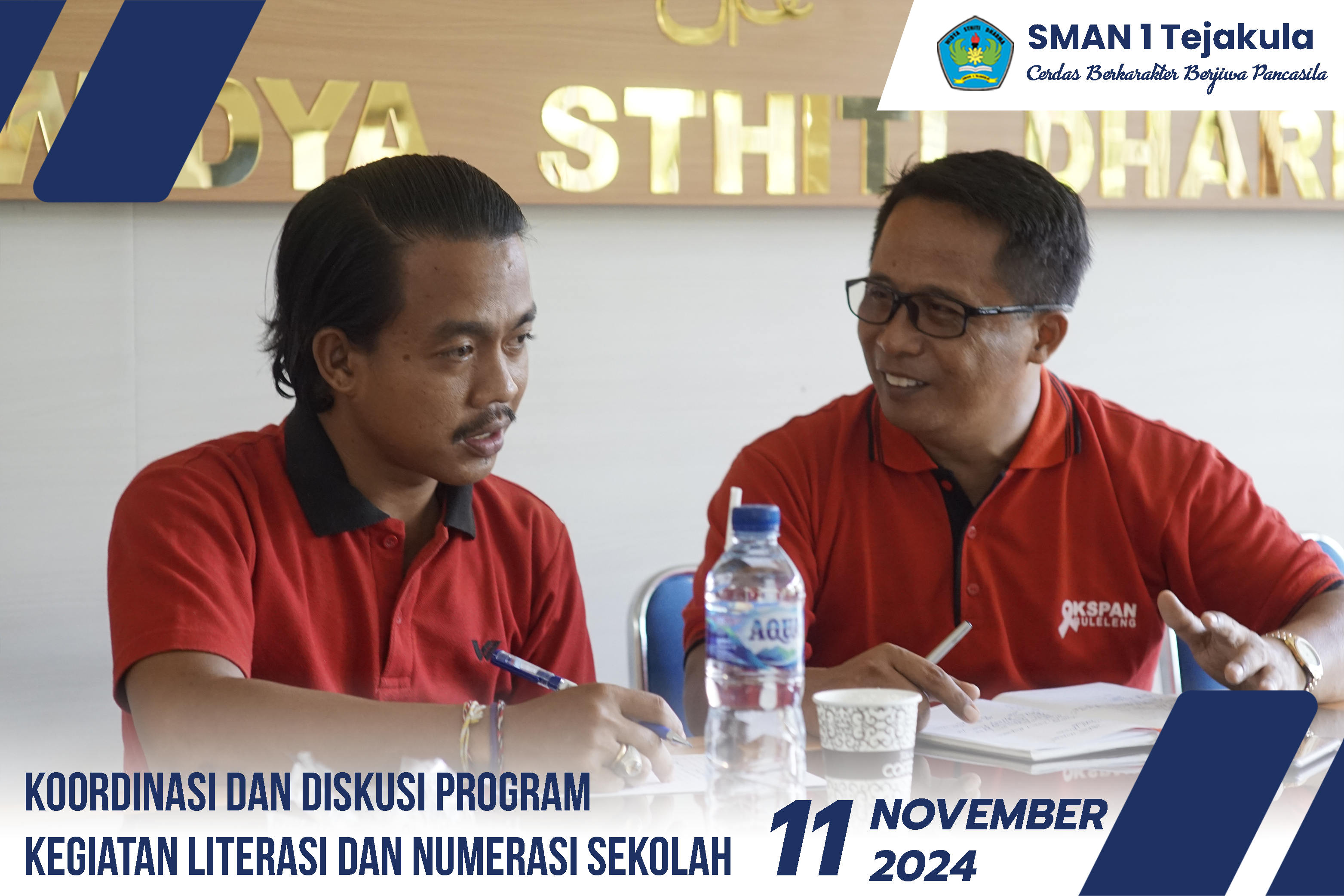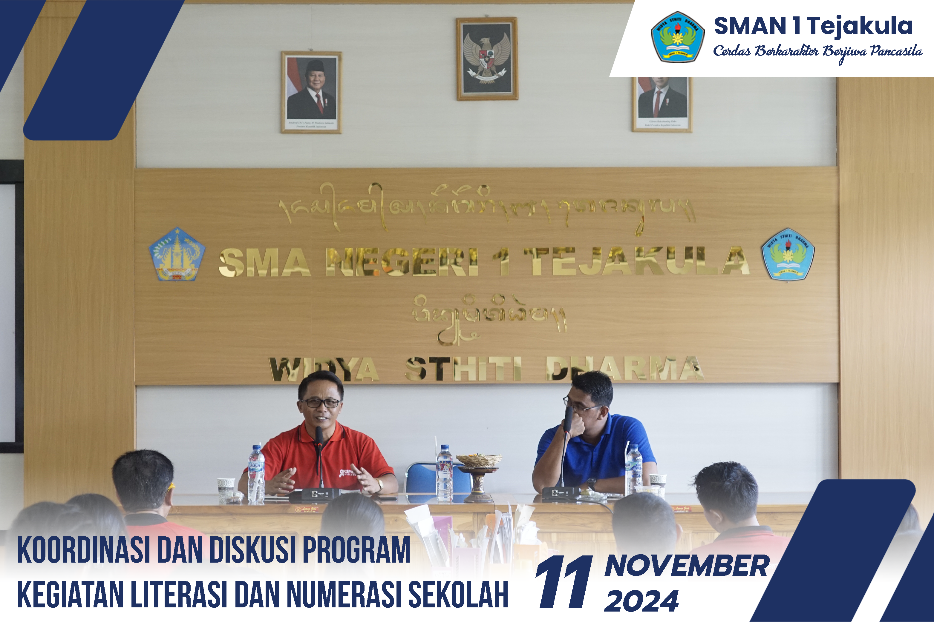 Pada hari Jumat, 8 November 2024, telah diadakan rapat koordinasi dan diskusi program kegiatan literasi dan numerasi di ruang rapat SMAN 1 Tejakula. Rapat ini dihadiri oleh Bapak Kepala Sekolah, Staf Pimpinan, serta Tim Literasi Sekolah. Diskusi mencakup perencanaan target kegiatan, pembuatan sistematis penulisan peserta didik, serta strategi kolaborasi antar tim untuk mendukung implementasi P5.
